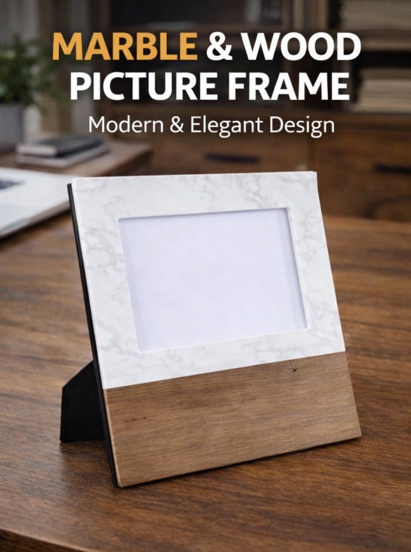 Marble Picture Frame- 10.25" L x 9" W x 0.6" H, hold a 5x7 photo