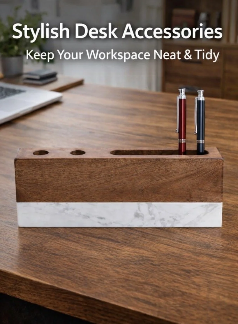 Marble Desk Pen/Pencil Holder- 3.5" L x 3.5" W x 3.5" H